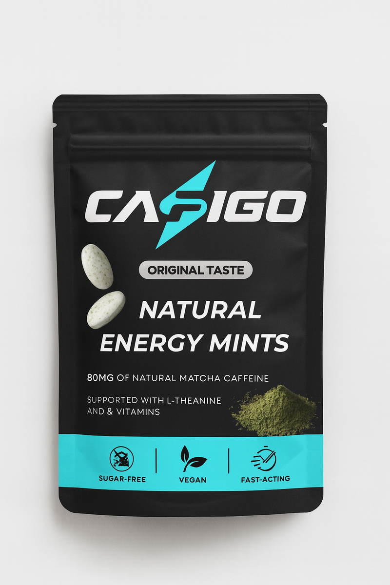Eén CAFIGO mint geeft je dezelfde cafeïne-boost als een kop koffie of een energiedrank, maar dan zonder suiker, morsen of onhandige blikjes.
